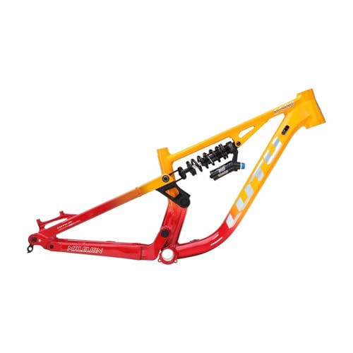 - Full suspension bike frame: 24er Mountain bikes frame, XC/AM/DH Soft Tail Enduro frame, seat tube length 320mm(12.6"). Rear wheel travel 125mm, 12*148mm Boost Thru Axle Frame, can fit outer tire max width 2.35inch. Weight: 4110g.