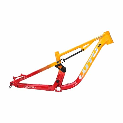 BSFHQS 24ER Mountain Bike Boost Frame 12.6″ Full Suspension Bike Frame Travel 125mm XC/AM/DH Soft Tail Enduro Frame Thru-Axle 148mm Aluminum Disc Brake Frame(Yellow red)