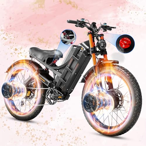 - [🔥2025 Launch Romeo Pro III: Hot Selling! Act Fast🔥]Core Upgrades of the 2025 eAhora Romeo Pro III Electric Bike:① 5600W Dual Motors,speeds up to 50mph.② 60V/80Ah battery for 200+ miles ultra ranges.③ Dual oil cup Hydraulic disc brakes,more efficient braking for safer rides.④ eAhora exclusive custom air fork shock absorber, adjustable & lockable for superior performance.⑤ Reinforced frame and tire rims, supports up to 500 LBS.⑥ Larger, softer, and more comfortable seat for a relaxing ride.