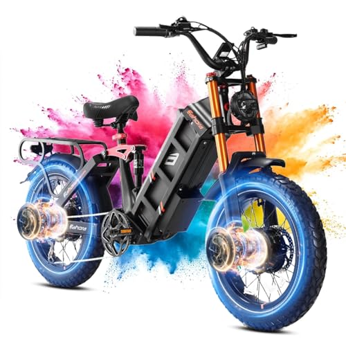 eAhora Juliet Pro II Electric Bike – 4400W Dual Motor 43MPH 60V 70Ah 200Mile Long Range Electric Bike for Adults, 20” Fat Tire Fast Electric Mountain Bike Full Suspension Electric Bicycle