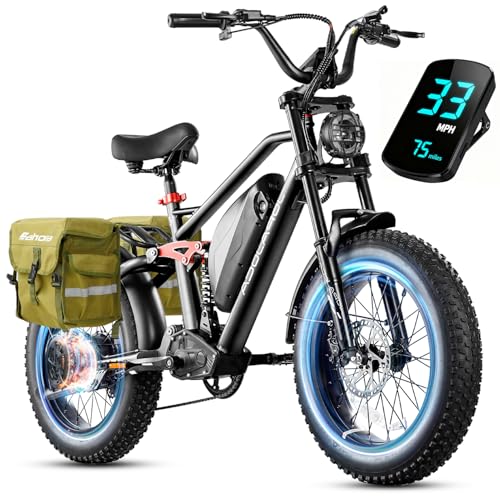 eAhora Terra [2025] Electric Bike for Adults, 3000W 31MPH Dual Motor Ebike for Men Women, 48V 15Ah 75+Mile Ebikes for Adults, 20″ Fat Tire Electric Bike, Full Suspension Electric Mountain Bike Black