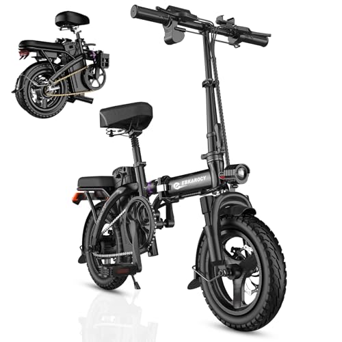 - 【Foldable & Convenient Design】 EBKAROCY adult electric bike boasts an impressive foldable design, with dimensions shrinking to just 27x17x26 inches and a mere weight of 55 pounds when folded. Whether you’re navigating city streets or planning an excursion to the countryside, this compact electric bike effortlessly caters to your needs. Its foldable design not only accommodates car trunks but also occupies minimal space on public transportation, in apartments, or at the office.