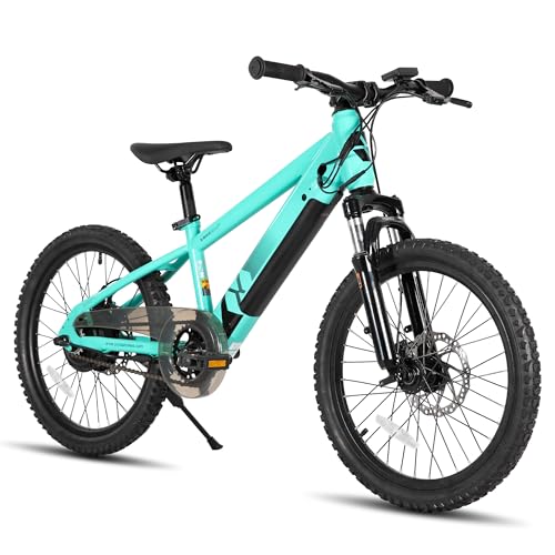 JOYSTAR 20 Inch Electric Bike for Kids Teens 7+ with 250W Brushless Motor, 15 Miles 15MPH Electric Mountain Bicycle with Removable Battery, Children Ebikes with Dual Disc Brakes, Green