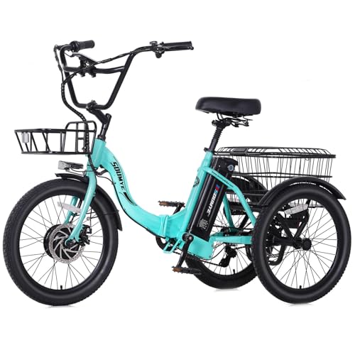 Soumye Electric Tricycle for Adults,20″ Folding Electric Trike,3 Wheels Electric Bicycle Bikes, 350W Step-Thru Etrike with 374WH Removable Battery and Large Basket for Women Men
