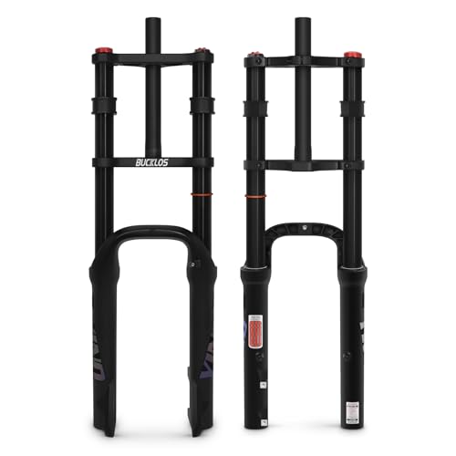 BUCKLOS 20 x 4.0 inch Fat Tire Electric Bike Air Suspension Fork Travel 180mm, QR 9 x 135mm Straight Tube 1 1/8 MTB Dual Crown Bicycle Front Forks Disc Brake for Ebike Snow Beach Mountain Bike ect