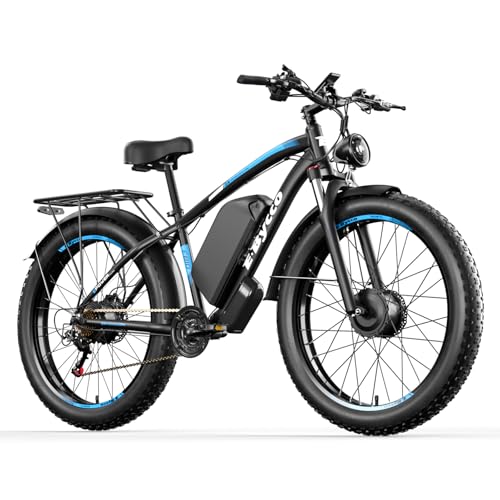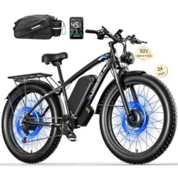 6000W Peak Dual Motor Ebike for Adults - 52V 34Ah Fast Electric Bike for Men Women 45 MPH,Up to 100 Miles,24" Fat Tire Lockable Suspension Electric Bicycle for Snow