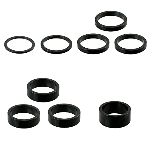 Saipe 9PCS Aluminium Alloy Bicycle Headset Spacer 1-1/8 inch 28.6mm Bicycle Front Fork Stem Spacers Kit 2mm, 3mm, 5mm, 10mm with Stem Top Cap, Long Bolt, Headset Star Nut