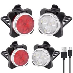 4 Pack USB Rechargeable Bike Light Set, Super Bright Front Headlight and Rear LED Bicycle Light, Bike Headlight, Bike Safety Light, 4 Light Mode Options, 650mah Lithium Battery, IPX4