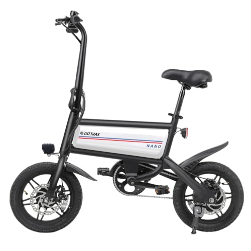 Gotrax Nano 14" Folding Electric Bike, Max Range 25Miles(Pedal-Assist) & Max Speed 15.5Mph, Power by 350W Motor, Adjustable Seat & Dual Fenders, Commuter Electric Bicycle for Adults/Teens White :