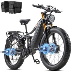 MOVCAN V30PROMAX Dual Motor Dual Battery Electric Bike for Adults Peak 3000W Motor Up to 37.5MPH &120Miles, 20" Fat Tire Electric Motorcycle Bike, Hydraulic brakes7-Speed 5-Layer Full Suspension :
