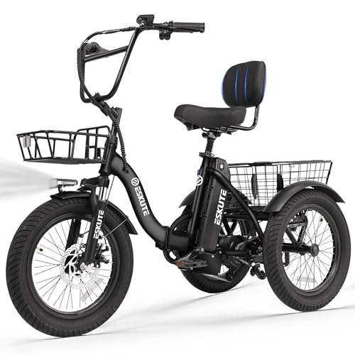 ESKUTE E Trike Electric Bike, Peak 1200W Brushless Motor Folding Trike 18X3.0 Fat Tire Ebike, 499Wh Battery, Step-Thru 3 Wheel Electric Bicycle, 55 Miles, 18MPH+ Tricycle for Adults Black