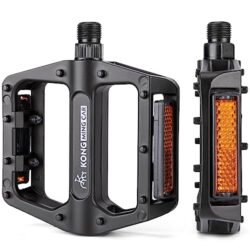 Mountain Bike Pedals 9/16 Inch - Bicycle Flat Pedals with Reflectors - Lightweight Aluminum Alloy Wide Platform Pedals for Mountain Bike, BMX, Road Bike Pedals (Black) : Sports &