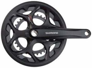 A triple crankset with melt forged arms, non-replaceable chainrings and is compatible with square taper bottom brackets.Alloy crank armsSteel chain rings48mm chain line with a 122mm spindleIntegrated chain guardChainrings