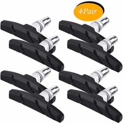 WTSHOP 4 Pairs V Bike Brake Pads with Hex Nuts and Spacers, Road Mountain Bicycle V-Brake Blocks Shoes Road Bike Mountain Bike Bicycle Brake Pads Bike Brake Pads Bike Brakes V Brake Bicycle Brakes